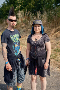 Portrait de festivaliers et de membres du staff présent au festival de musique extrême Hellfest 2023.