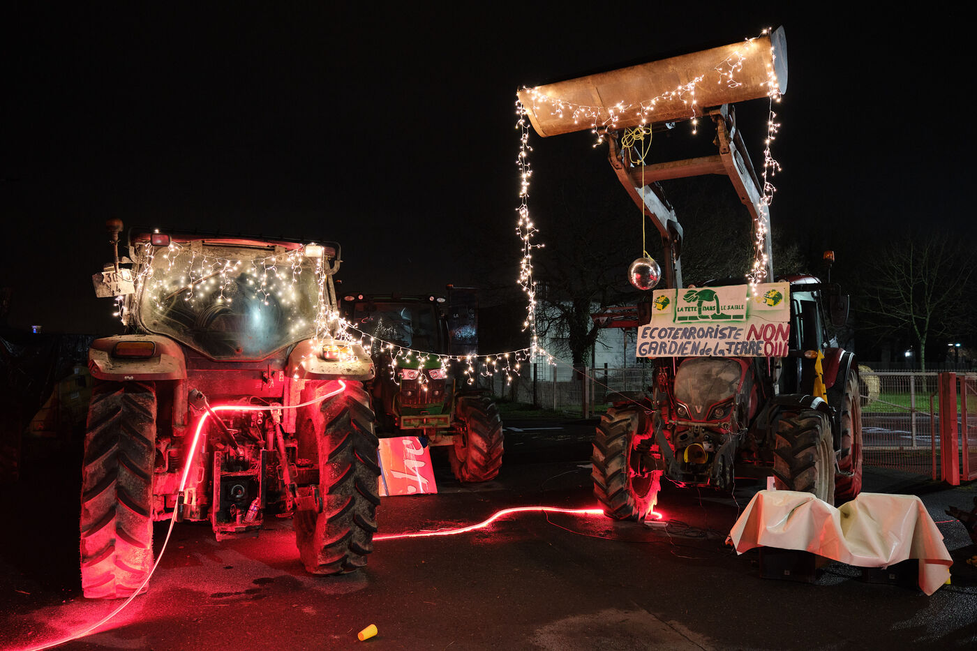 In the early hours of Thursday morning, the Confederation paysanne du 44, CIVAM 44 and GAB 44 were still blocking the SCA Ouest Leclerc purchasing centre near Nantes.