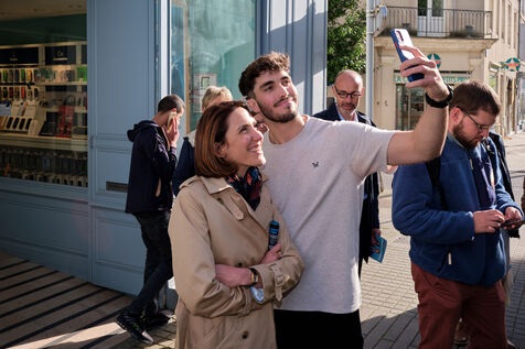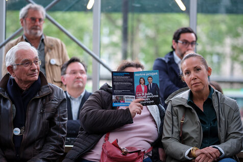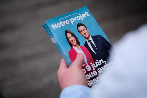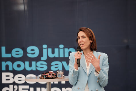 Portrait of MEP Valerie Hayer, head of the Besoin d Europe list, from the renaissance party, taking part in a leafleting campaign and a public meeting ahead of the European elections, in La Roche-sur-Yon, France on May 16, 2024.