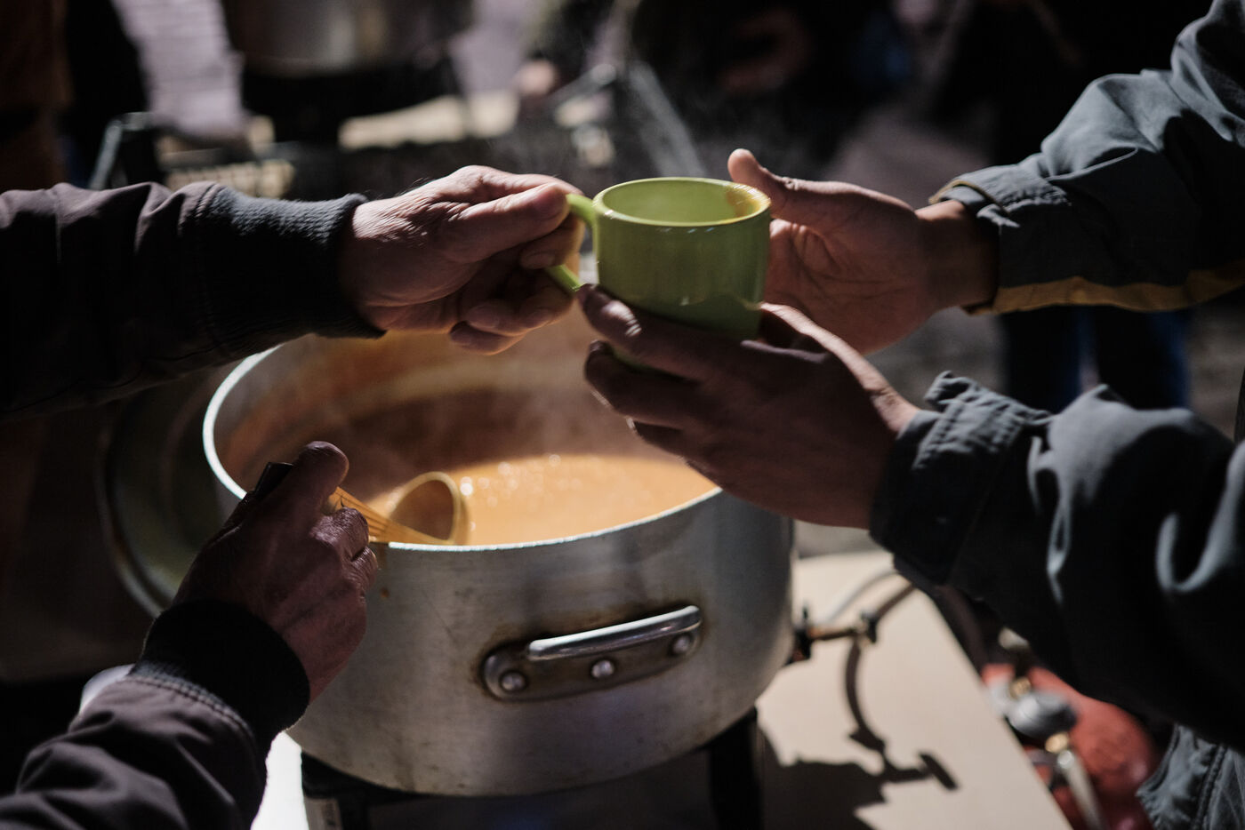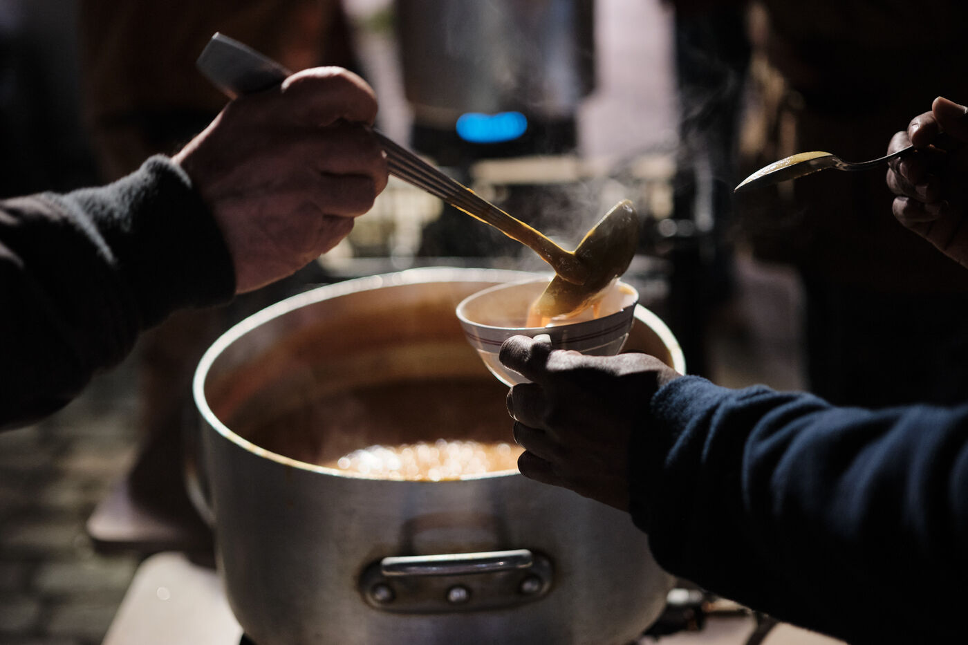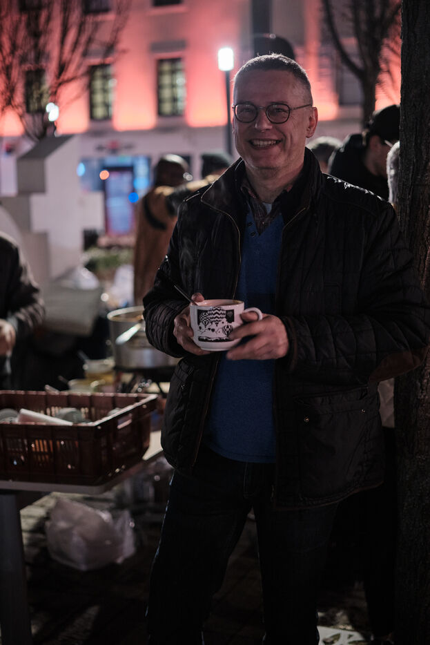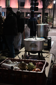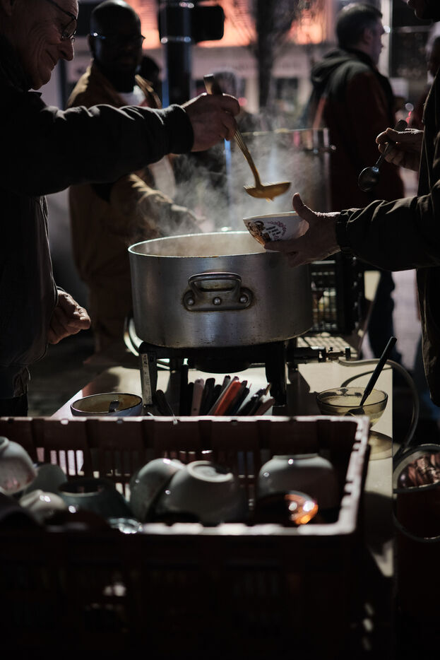 Distribution de soupe populaire en partenariat avec Emmaus, le Secours Catholique, Misolcho, pour defendre les personnes en situation de precarite, a Cholet, France le 04 mars 2025.