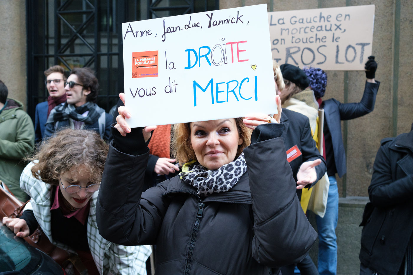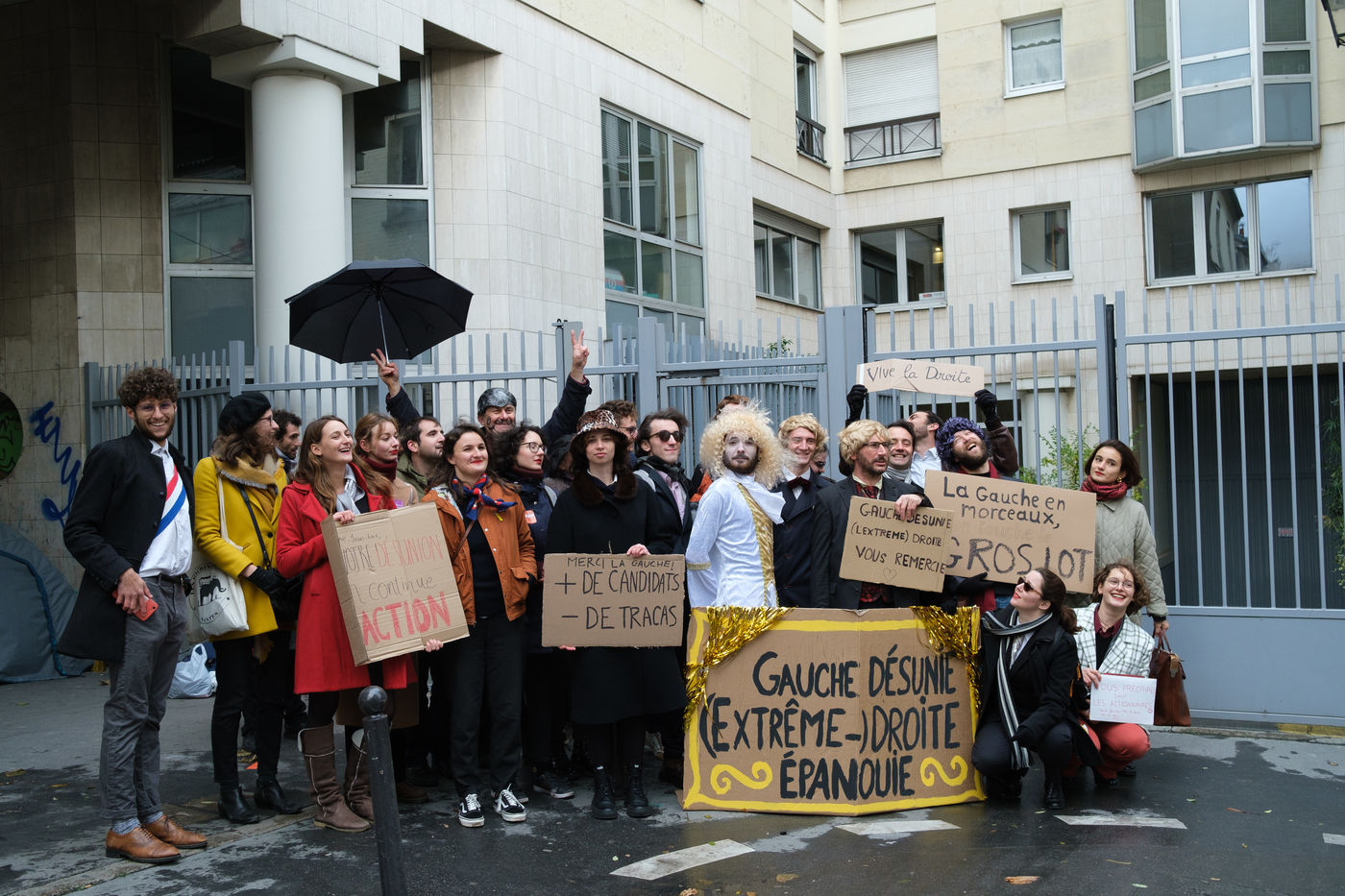The Popular Primary is a movement that tries to push the candidates of the different left-wing and ecological parties to unite behind a common program for the 2022 presidential election. On Sunday, November 28, 2021, members of the permanent team and volunteers gathered in a parody demonstration to protest against the disunity of left-wing and ecological parties, in front of the campaign offices of Jean-Luc Mélanchon (LFI), Anne Hidalgo (PS) and Yannick Jadot (EELV).