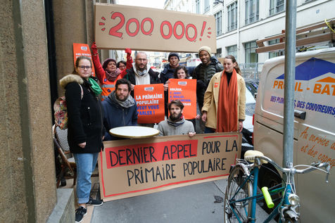 La Primaire Populaire est un mouvement qui tente de pousser les candidats des différents partis de gauche et écologiques à se regrouper derrière un programme commun en vue de l'élection présidentielle de 2022. Mardi 30 novembre des membres de l'équipe permanente et des bénévoles se sont mobilisés devant les locaux de campagne à Anne Hidalgo (PS), Yannick Jadot (EELV) et à Jean-Luc Mélenchon (LFI), pour leur rappeler qu'il leur restait jusqu'à minuit, pour s'exprimer sur leur intention de participer ou non à la Primaire Populaire.