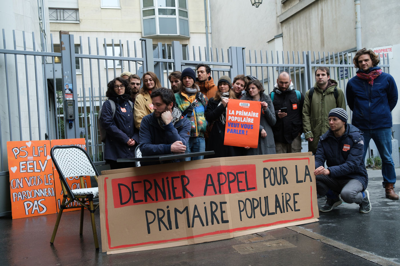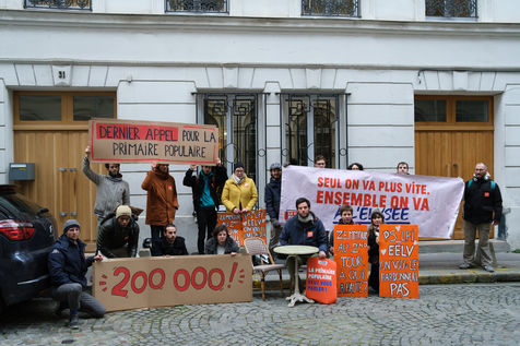 The Primaire Populaire is a movement that tries to push candidates from different left-wing and ecological parties to unite behind a common program for the presidential election of 2022. On Tuesday, November 30, members of the permanent team and volunteers mobilized in front of the campaign offices of Anne Hidalgo (PS), Yannick Jadot (EELV) and Jean-Luc Mélenchon (LFI), to remind them that they had until midnight to express their intention to participate or not in the Popular Primary.