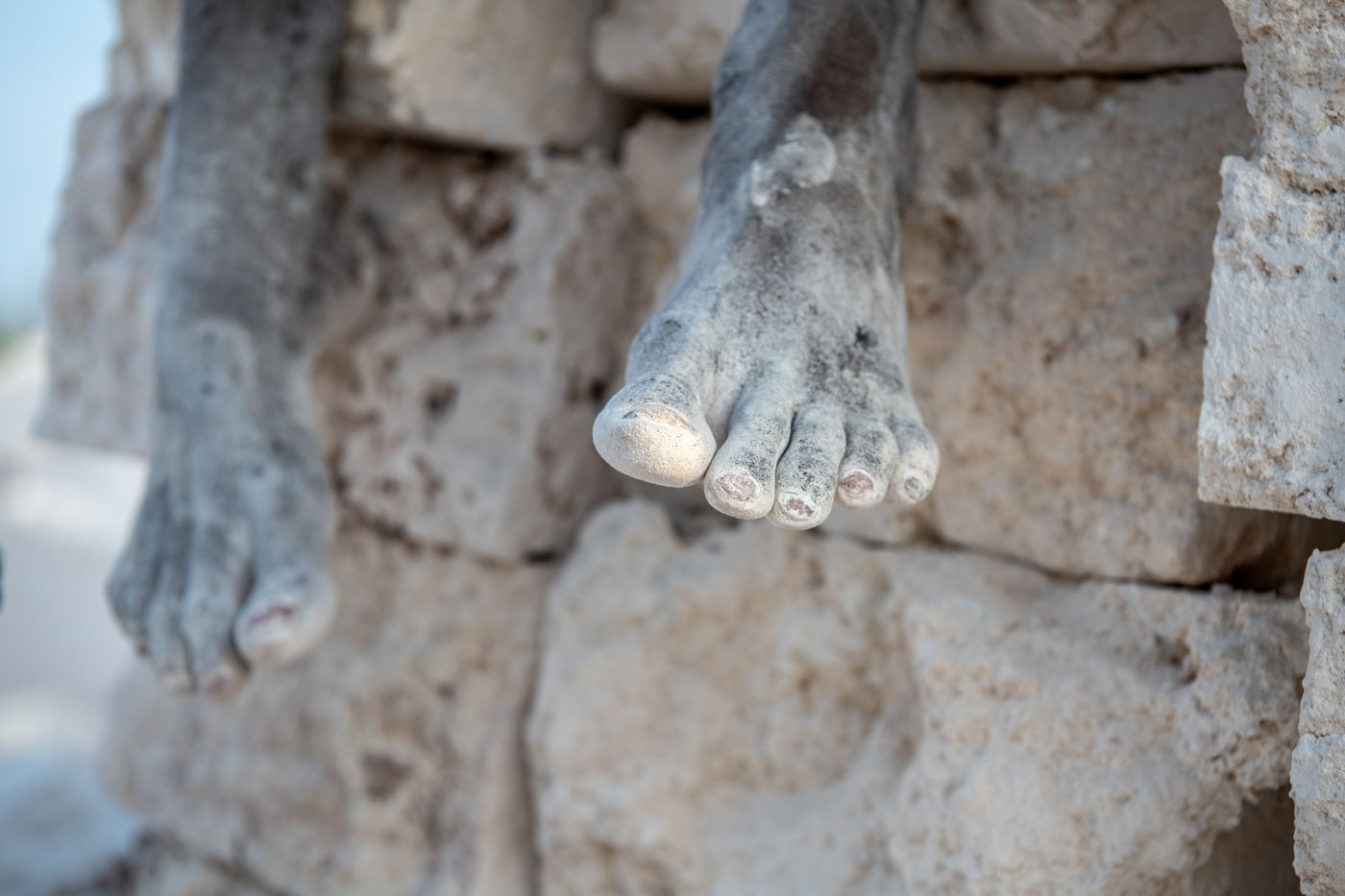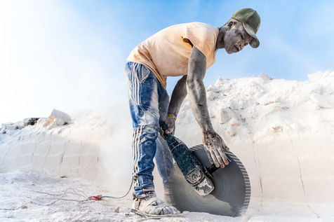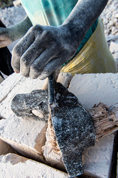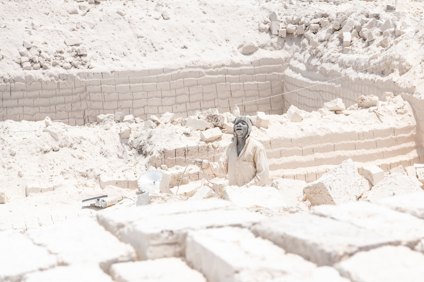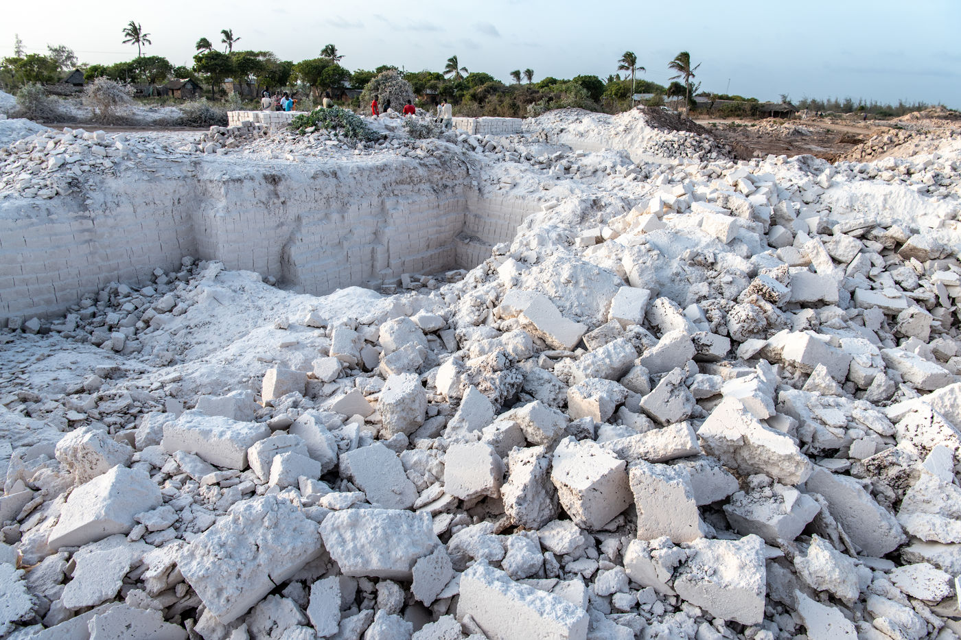 Cut from the ground in a thick white smoke, the bricks, made of naturally compacted coral, are used to build all the houses in the region.