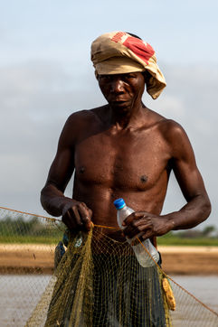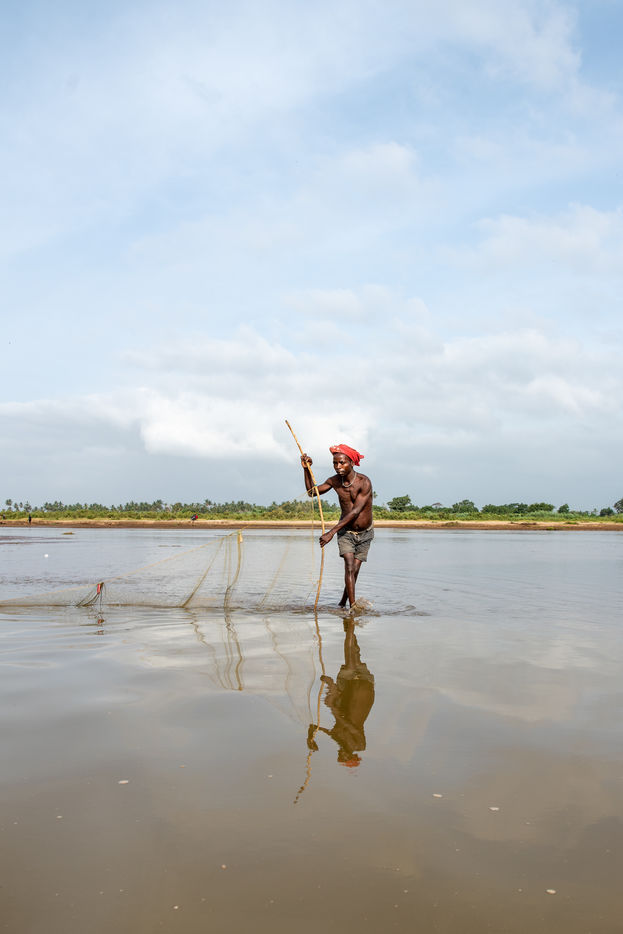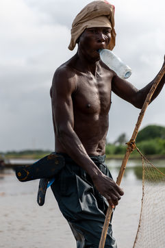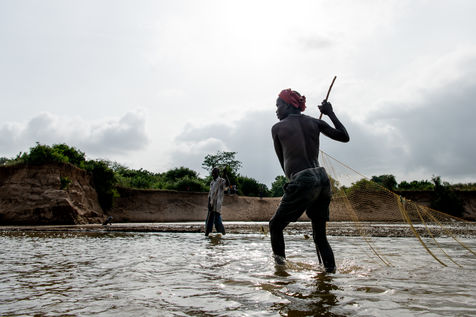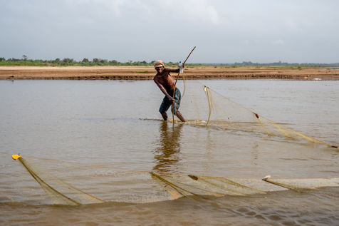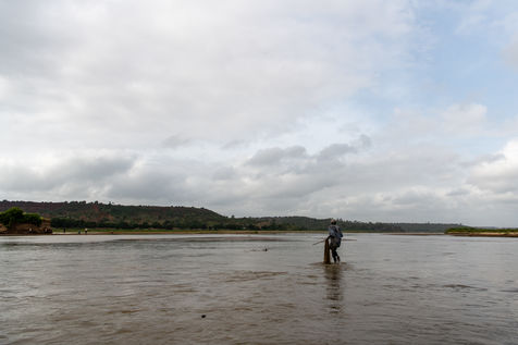 With the droughts induced by climate change, the water in the river is drying up and fish are becoming scarcer. The fishermen of the village have to convert to agriculture or move to the city to find new economic opportunities in construction.