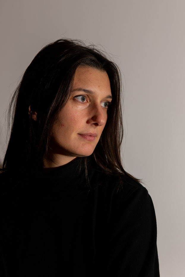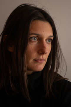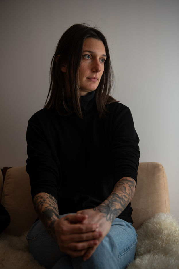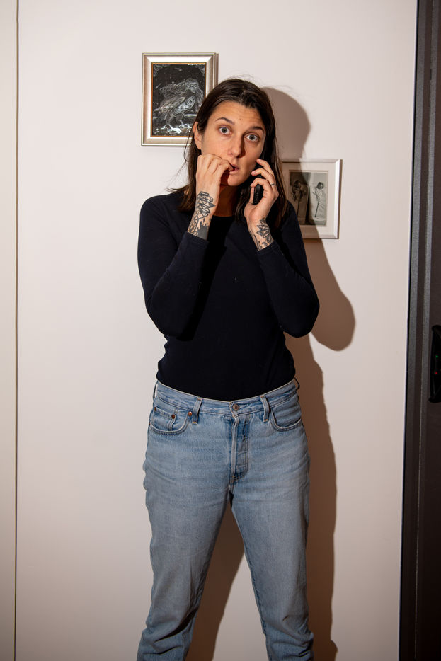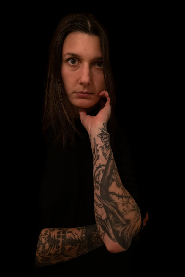 Portrait of Olympe de G., feminist author and director known for writing 'Jouir est un sport de combat' and directing the feminist pornographic film 'Une dernière fois' with Brigitte Lahaie.