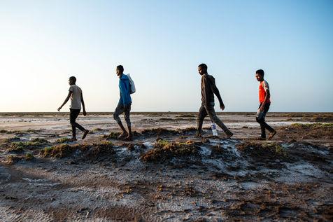 Sur la route de Dikhil à Obock, les migrants qui retournent en Éthiopie croisent ceux qui partent vers le Yémen dans un ballet incessant d'ombres brûlées sur un bitume chauffé parfois à plus de 50 degrés.