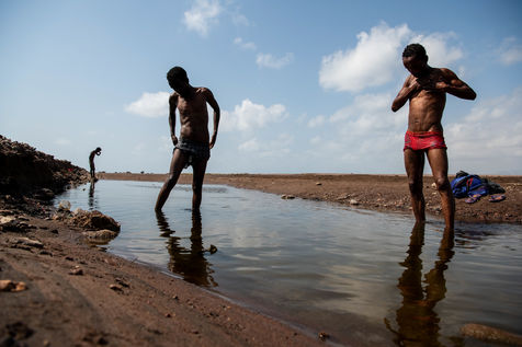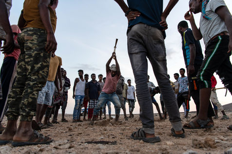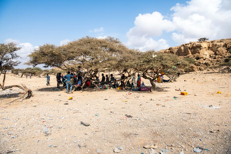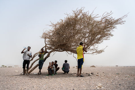 On the road from Dikhil to Obock, migrants returning to Ethiopia pass those heading to Yemen in an endless ballet of burnt shadows on asphalt heated at times to over 50 degrees.