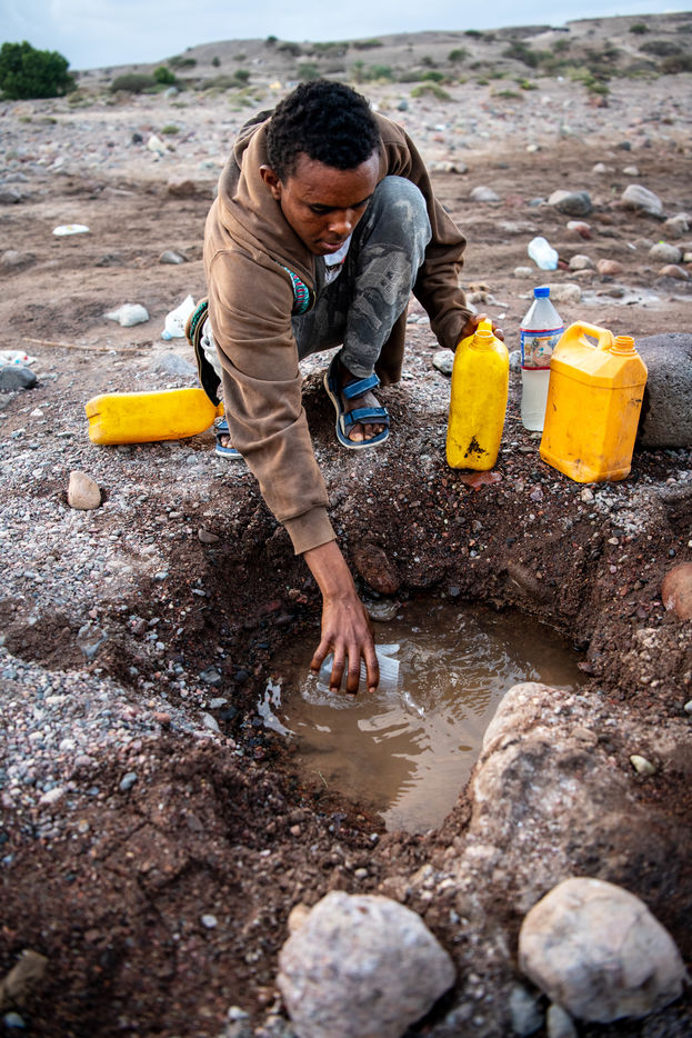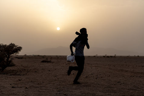 Due to the increase in Coast Guard interceptions along the coastline, smugglers are dropping migrants farther and farther away, sometimes more than 70 kilometers from Obock, the first city. They then have to walk across the desert without food or water. The lack of paved roads and the violent wind that sweeps the sand, erasing and shaping new tracks every day, makes orientation in the desert almost impossible for these migrants. Some go in the opposite direction, into the deep desert that goes to the Eritrean border, drastically reducing their chances of survival.