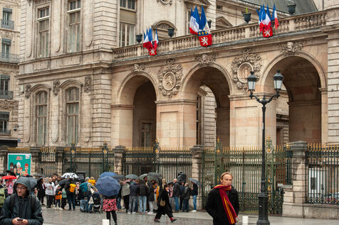 À Lyon, dans le Rhône, en France, le 7 mai 2025, des centaines de personnes se rassemblent pour soutenir les deux otages français, Cécile Kohler et Jacques Paris, détenus en Iran depuis 3 ans.