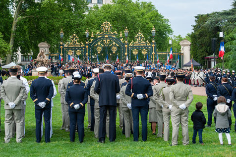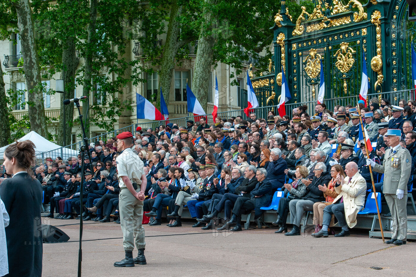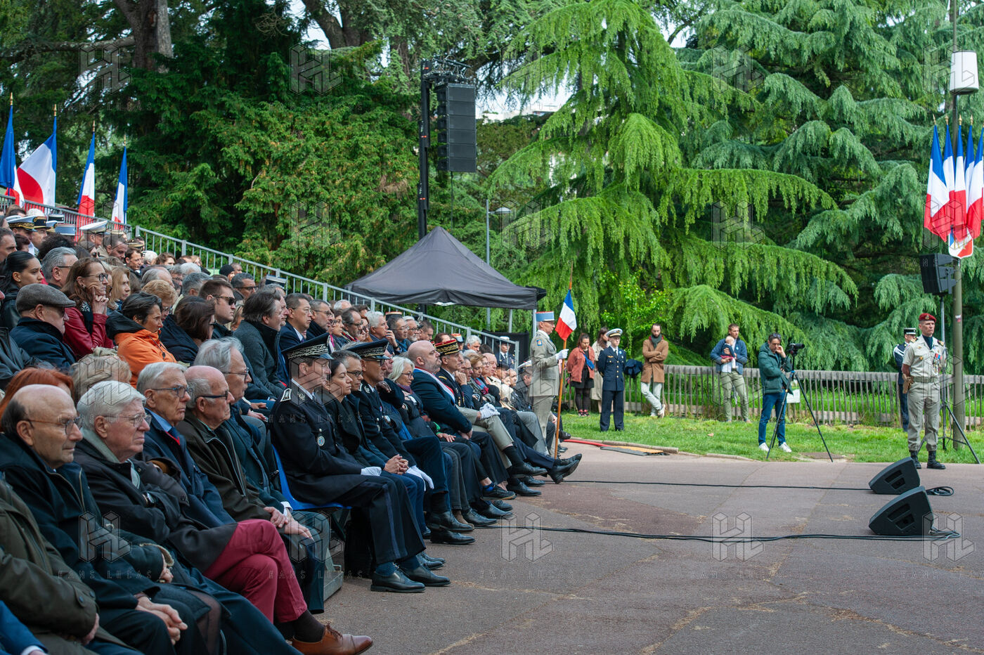 À Lyon, dans le Rhône, en France, le 8 mai 2025, des centaines de personnes se rassemblent en commémoration du 8 mai 1945. Reportage vécue à travers le point de vue du chef de corps Fabien Striffling donnants les ordres aux formations présentes. Racontant le déroulé de la cérémonie.