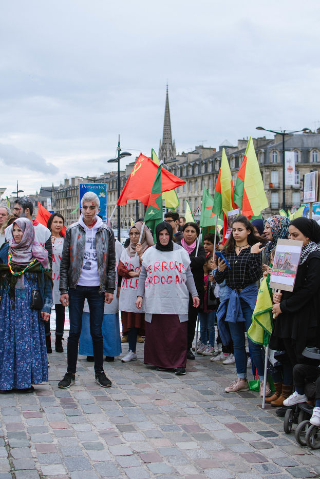 Environ 500 personnes ont manifesté à Bordeaux pour dénoncer les actions menées par Erdogan sur le territoire autonome du Rojava au Nord de la Syrie.