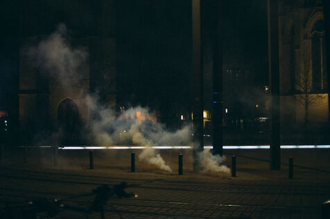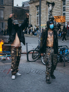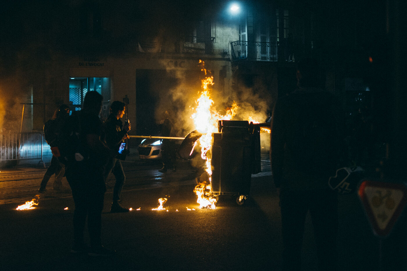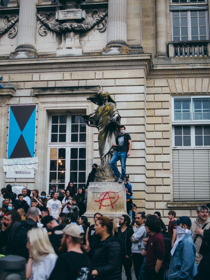 Manifestation sauvage partie de la faculté de la Victoire, occupée depuis quelques jours, à Bordeaux. Des manifestants ont mis le feu à la porte d'entrée de la mairie.