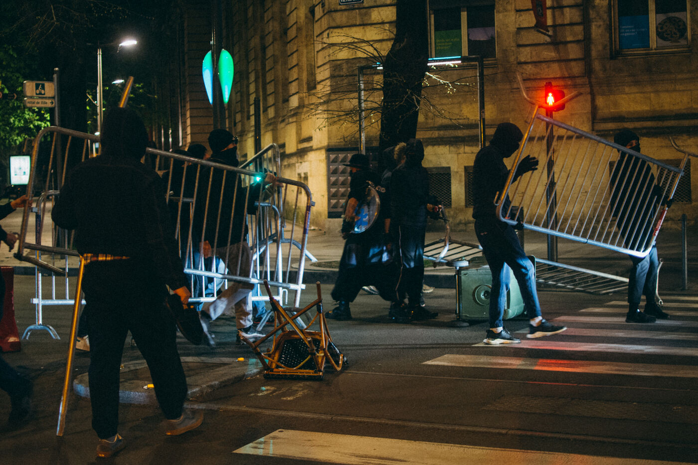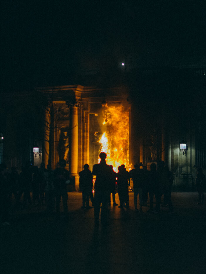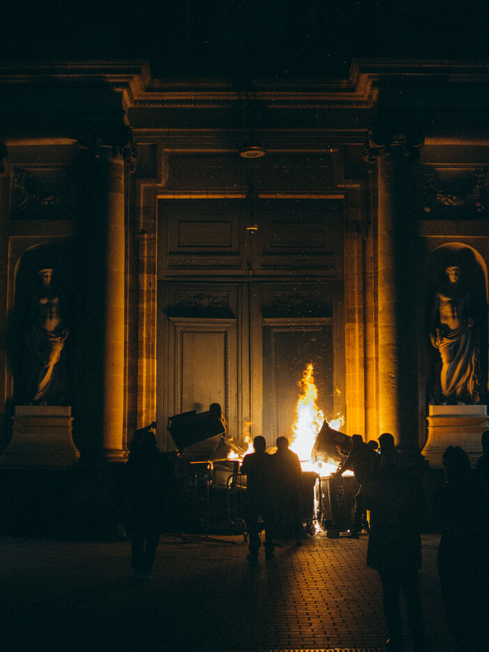 Wild demonstration part of the faculty of Victory, occupied for a few days, in Bordeaux. Demonstrators set fire to the front door of the town hall.