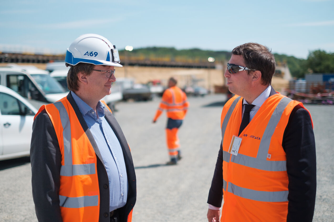 Parliamentary visit to the A69 freeway worksite as part of the commission of inquiry into the financial and legal set-up of the A69, in the presence of deputies Jean Terlier (Renaissance), commission chairman, and Christine Arrighi (Écologiste - NUPES), commission rapporteur.