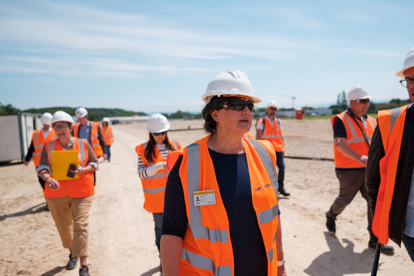 Visite de parlementaire du chantier de l'autoroute A69 dans le cadre de la commission d'enquête sur le montage financier et juridique de l'A69, en présence des députés Jean Terlier (Renaissance), président de la commission et Christine Arrighi (Écologiste - NUPES) rapporteure de la commission.