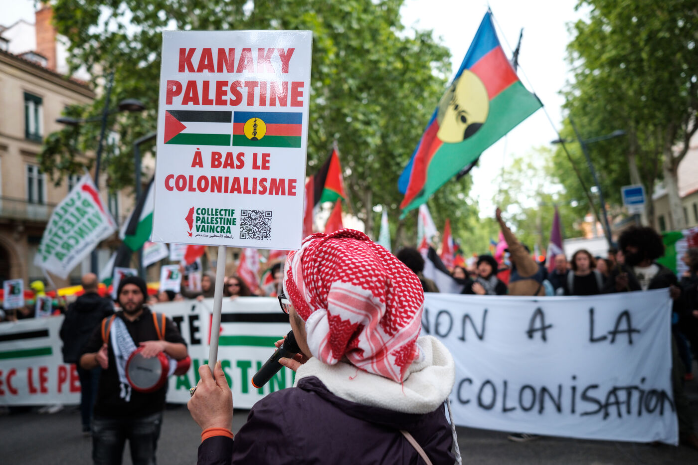 Demonstration against colonialism in Palestine and Kanaky