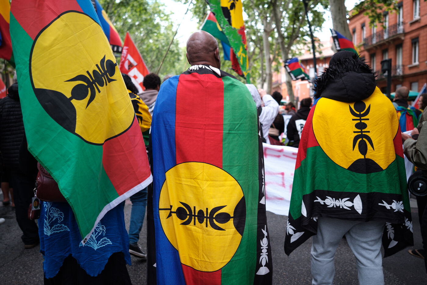 France, Toulouse, 2024-05-18. Demonstration against the colonization of Palestine by the State of Israel and of Kanaky (New Caledonia) by the State of France and in memory of the 76th anniversary of the Nakba and following the violent tensions in Kanaky (New Caledonia) against the thawing of the electoral body.