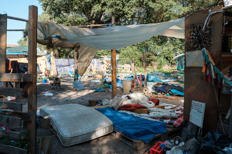 France, Saïx, 2024-28-08. On the occupied Cal'Arbre site of the ZAD against the A69 motorway, activists and zadists are getting organized in the wake of heavy repression by the forces of law and order in recent days. They are getting organized to cope with the arrival of the tree-cutting season, when the many occupied oak trees are due to be felled.