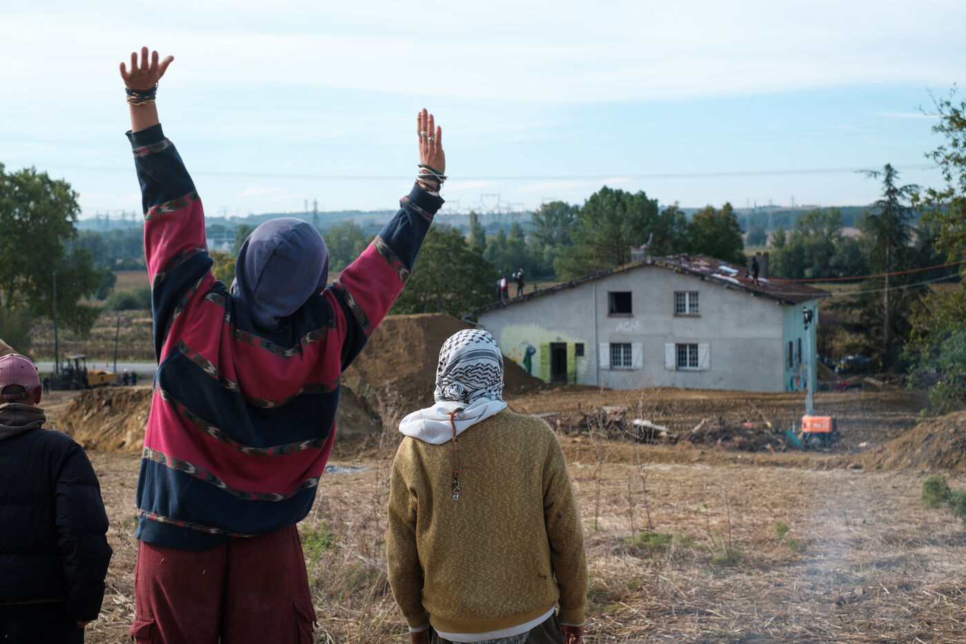 France, Verfeil, 2024-09-27. After two weeks of attempts to evacuate the ZAD against the A69 at the Verger site by the forces of law and order, squirrels (activists) are still in the trees to protect them from felling and to oppose the construction of the A69 freeway.