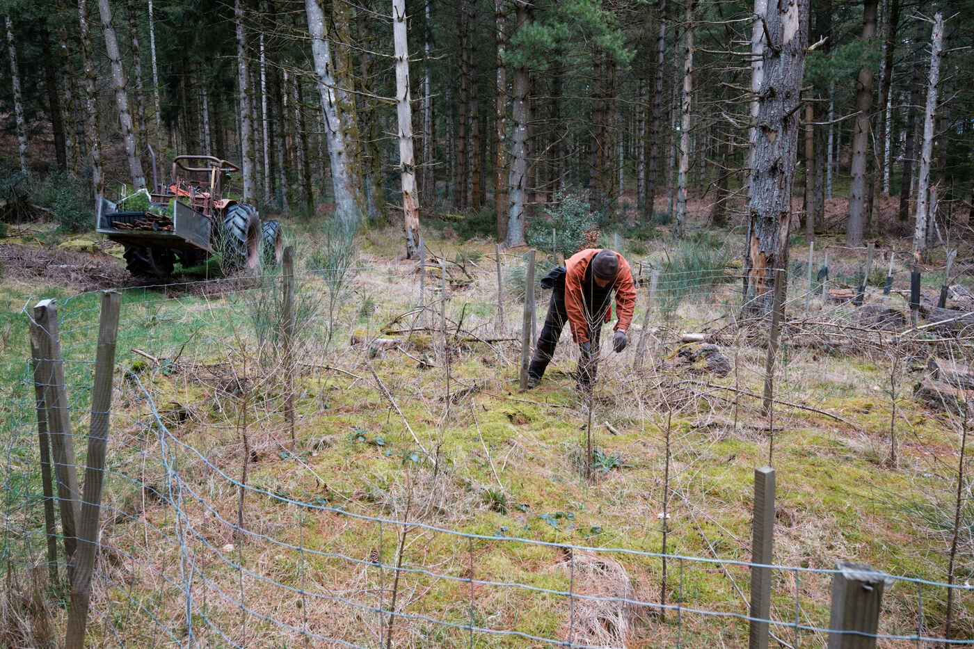 France, Tarn, 2025-03-05. Mathias Bonneau is a lumberjack and forest manager. Every spring, he plants several species of trees in his forest, using different systems to study their evolution within the ecosystem. These experiments enable us to observe how individuals adapt to ecological and climatic changes in a diversified forest with a continuous canopy.