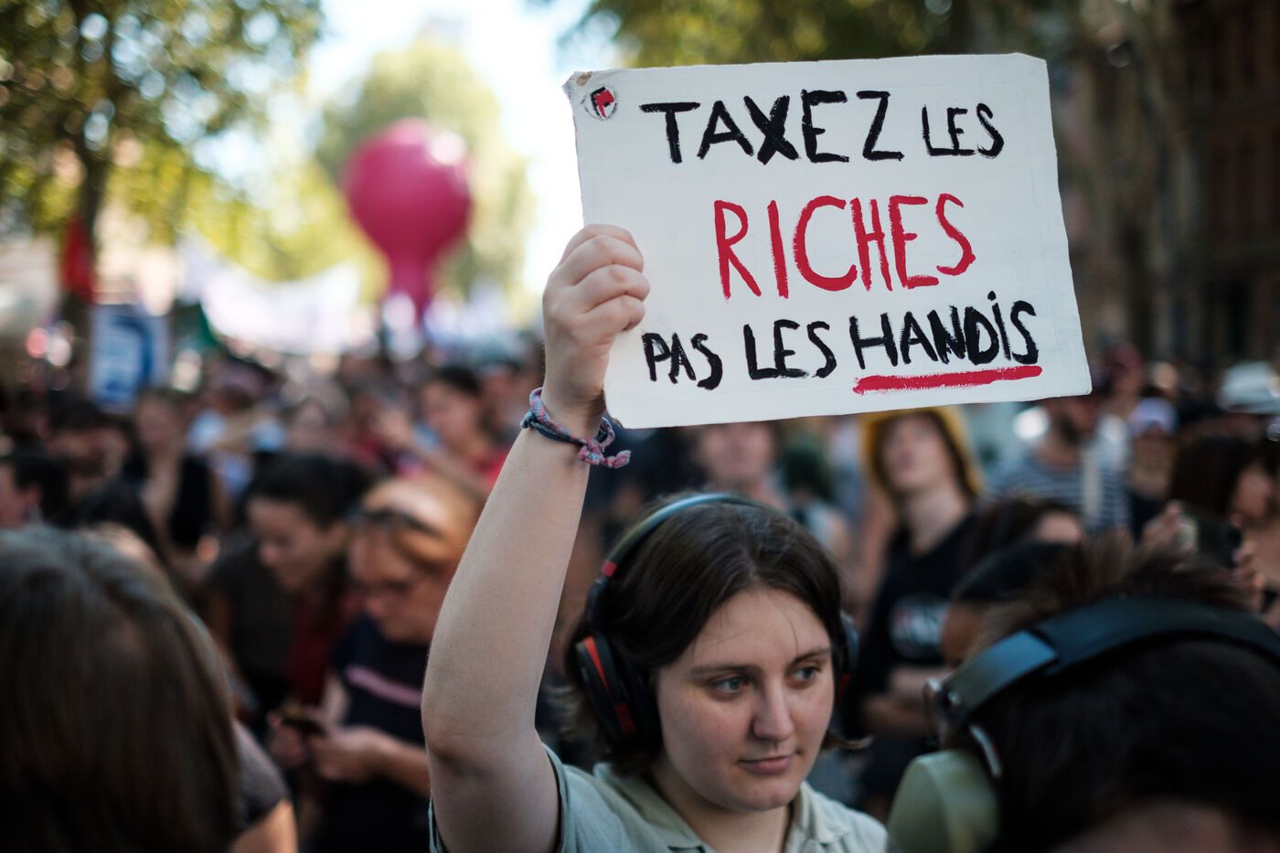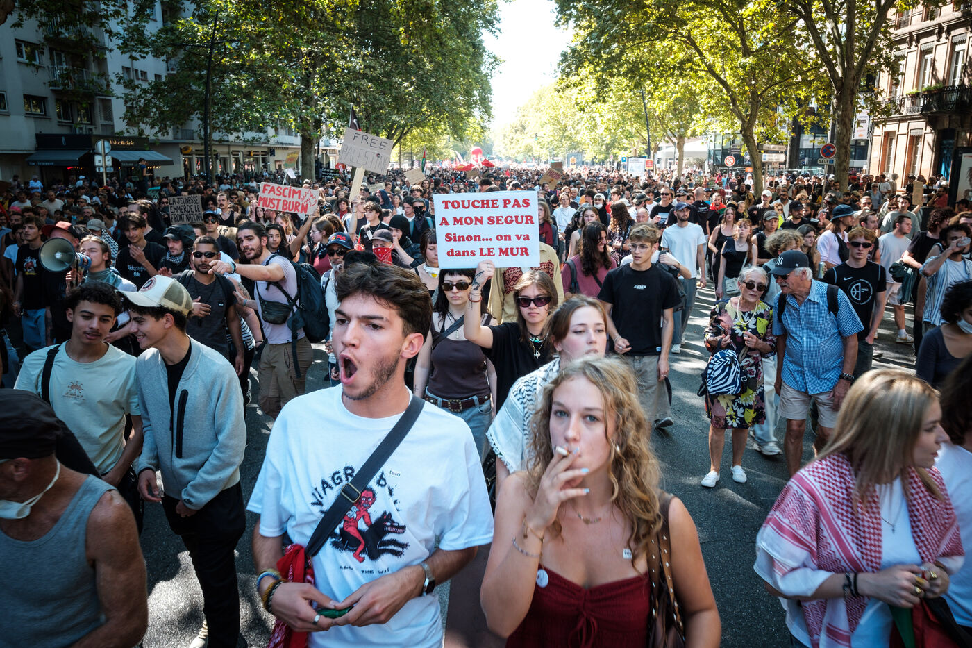 France, Toulouse, 2025-09-18. Manifestation intersyndicale pour l'acte 2 du mouvement social "Bloquons tout" face à la politique d'austérité économique et situation de raz le bol des classes populaires et moyennes du pays.