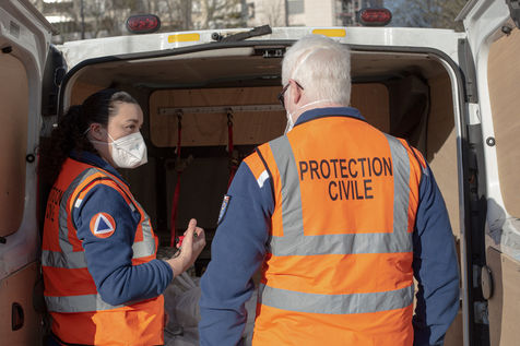 Maraude de la protection civile de paris in the 19th district during the Covid-19 pandemic, March 25, 2020, Paris.