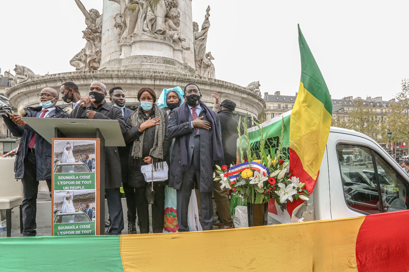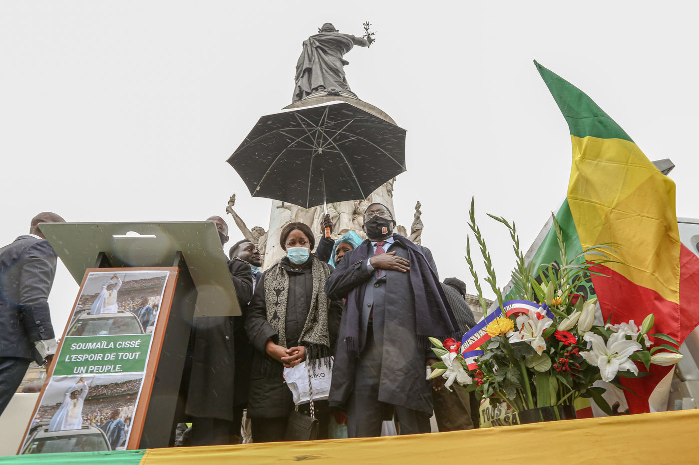 URD leader and Malian opposition figure SOUMAILA CISSE in Place de la Republique to thank the diaspora after his release, October 24, 2020, Paris, France.