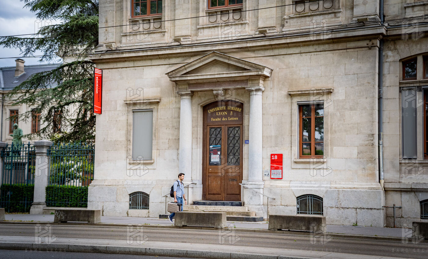 Entre classicisme et effervescence urbaine, la façade de l’Université Lyon 2 – Campus Berges du Rhône incarne l’histoire et la vie étudiante lyonnaise.