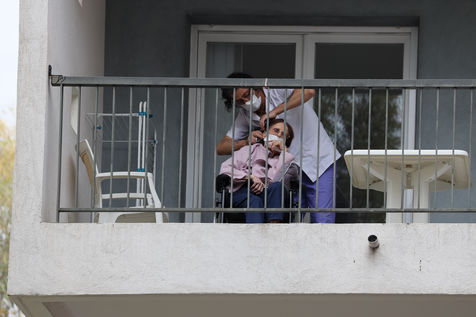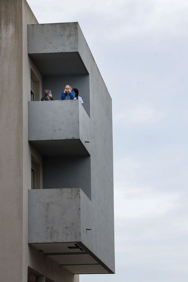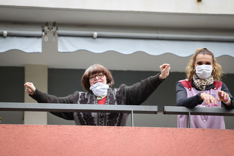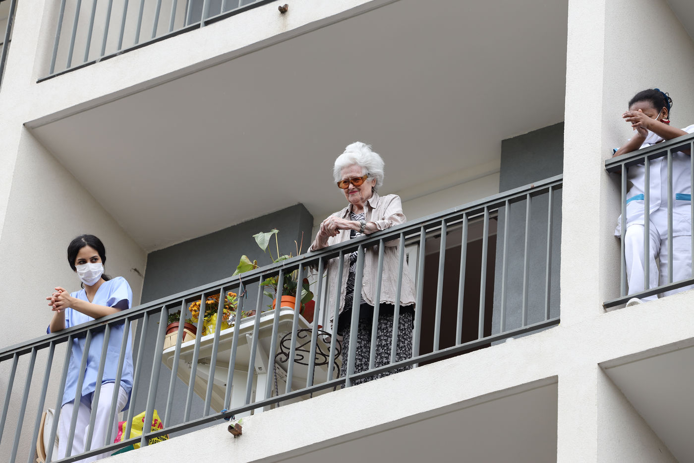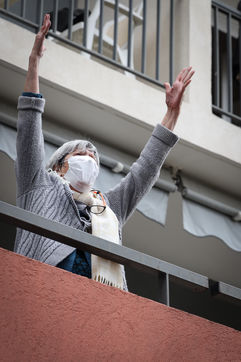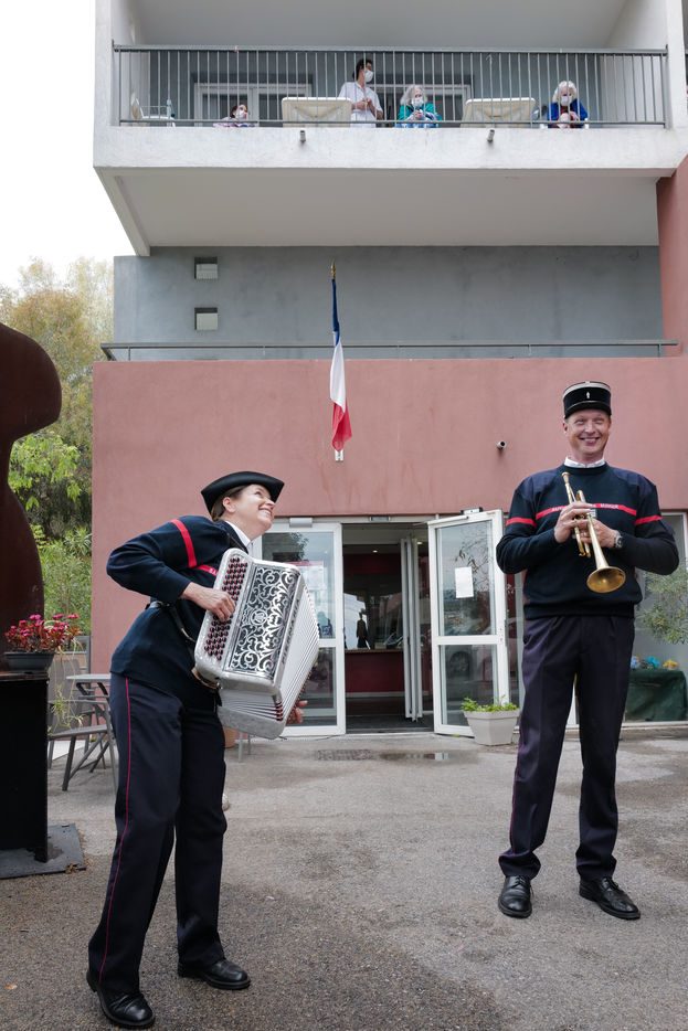 In an EHPAD (Nursing Home for elderly people) in Nice, a solidarity concert in support of the elderly is organised by the fire brigade orchestra. The confined residents listen to the music from their balcony or window. An initiative that offers a friendly interlude and brings a little joy to the elderly who have been deprived of visits for several weeks.