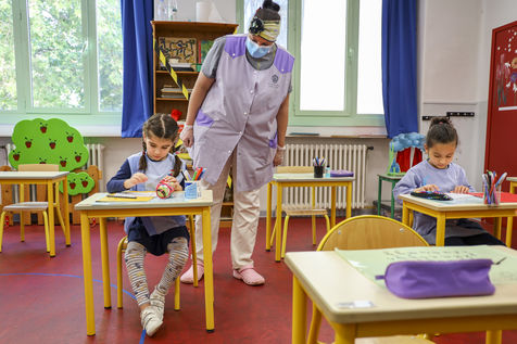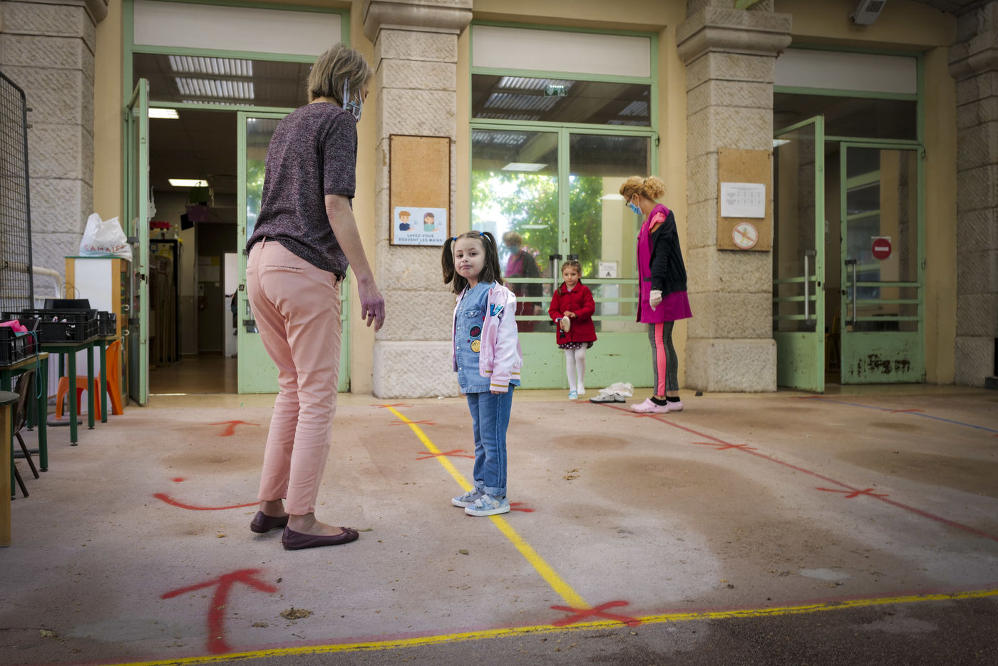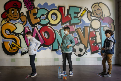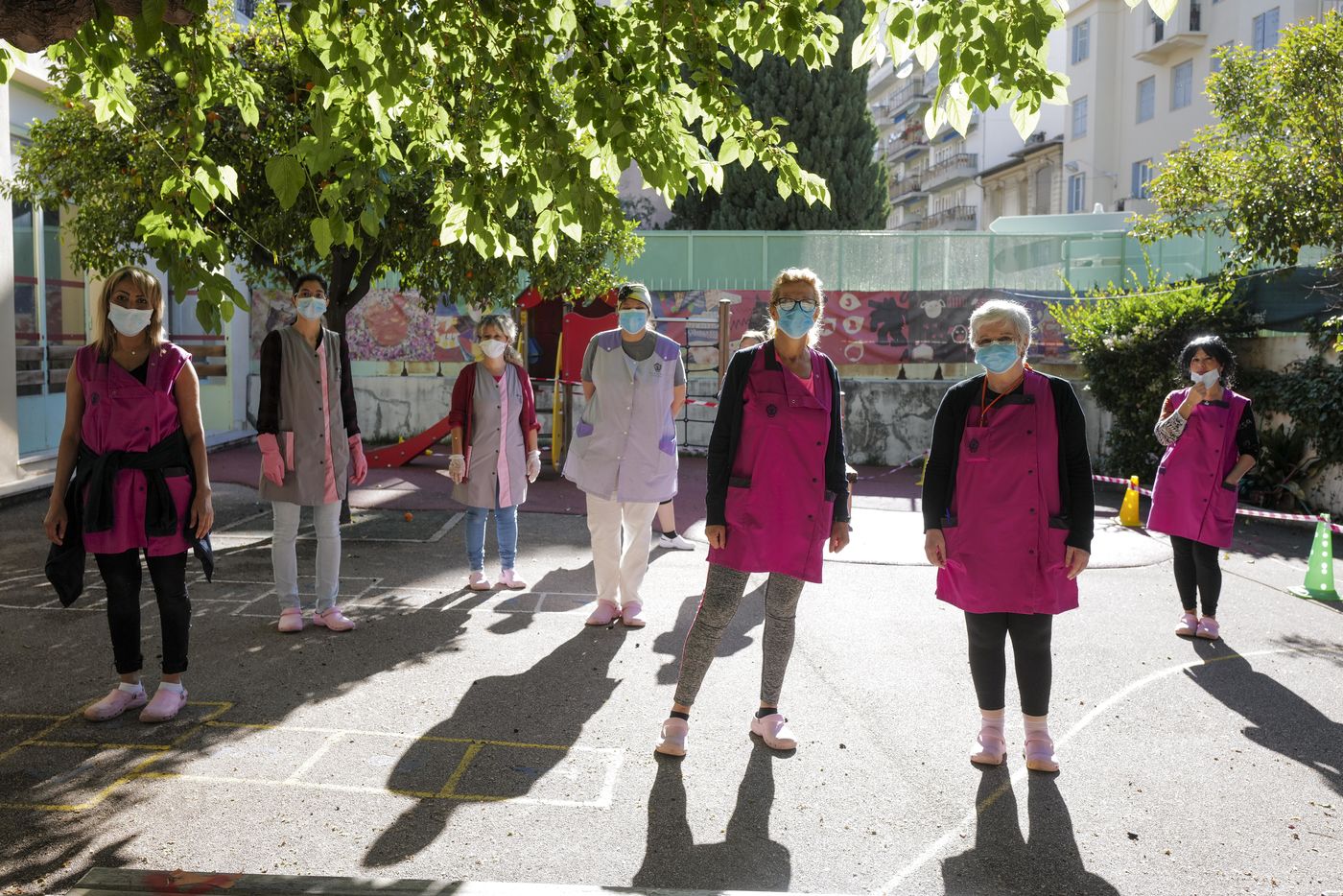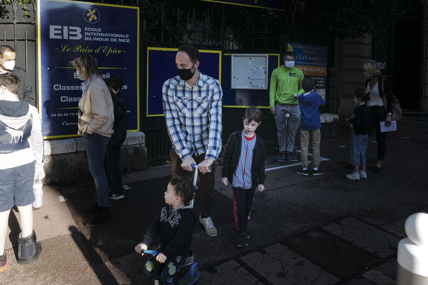 May 12, 2020 marks the start of the school year after 56 days of Covid-19 containment. At the Simone Veil Primary School in Nice, parents accompany their young children with concern, but they do not always have a choice. The children are sometimes masked, but it is not an obligation. Sanitary measures have been taken with the disinfection of the classrooms the day before, and physical distance markings on the ground have appeared in the courtyard and classrooms. The Mayor of Nice, Christian Estrosi, visited the children and the teachers to remind them of the strict instructions.