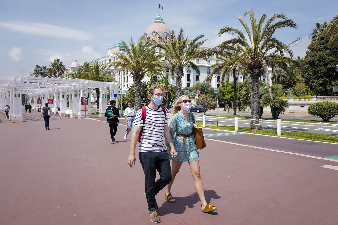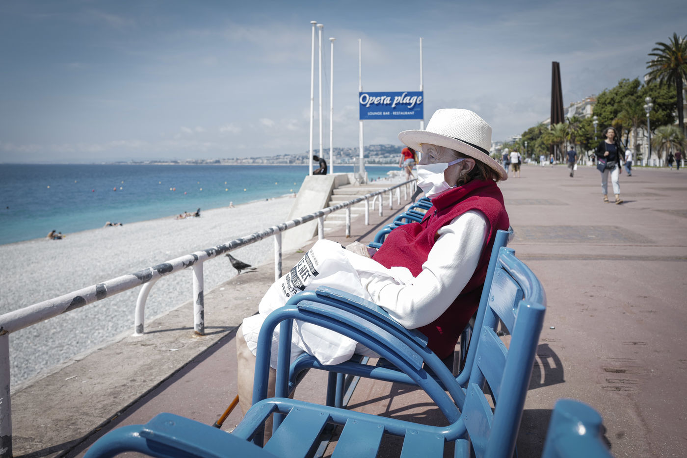 Drapeau rouge pour le Week end de l'Ascension. Quelques jours après le début du déconfinement, les plages de la Cote d'Azur se remplissent malgré les restrictions sanitaires sur l'accès aux plages dynamiques.
