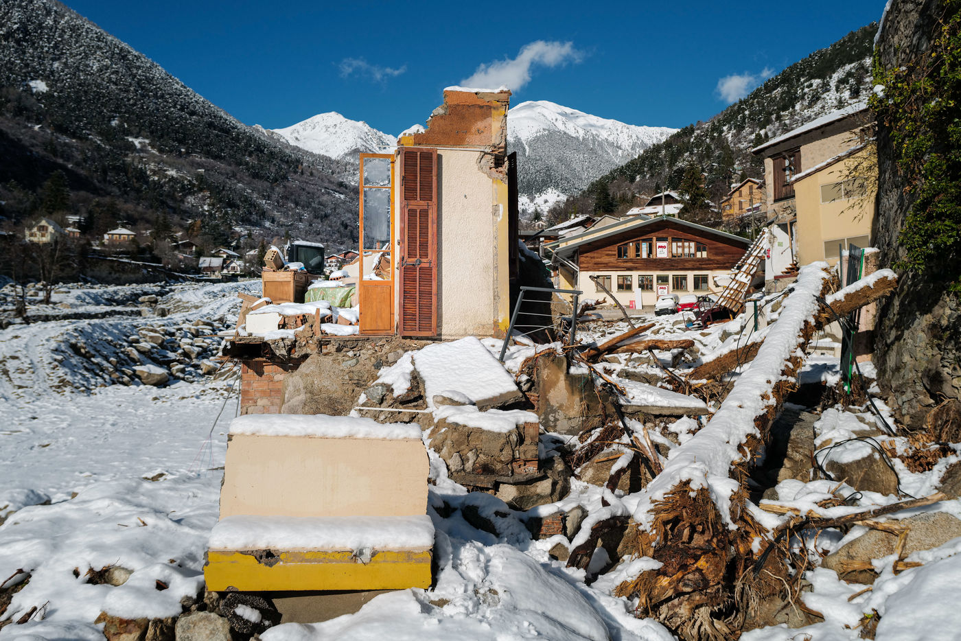 2 months after ALEX, Saint Martin Vésubie is licking its wounds under the snow.