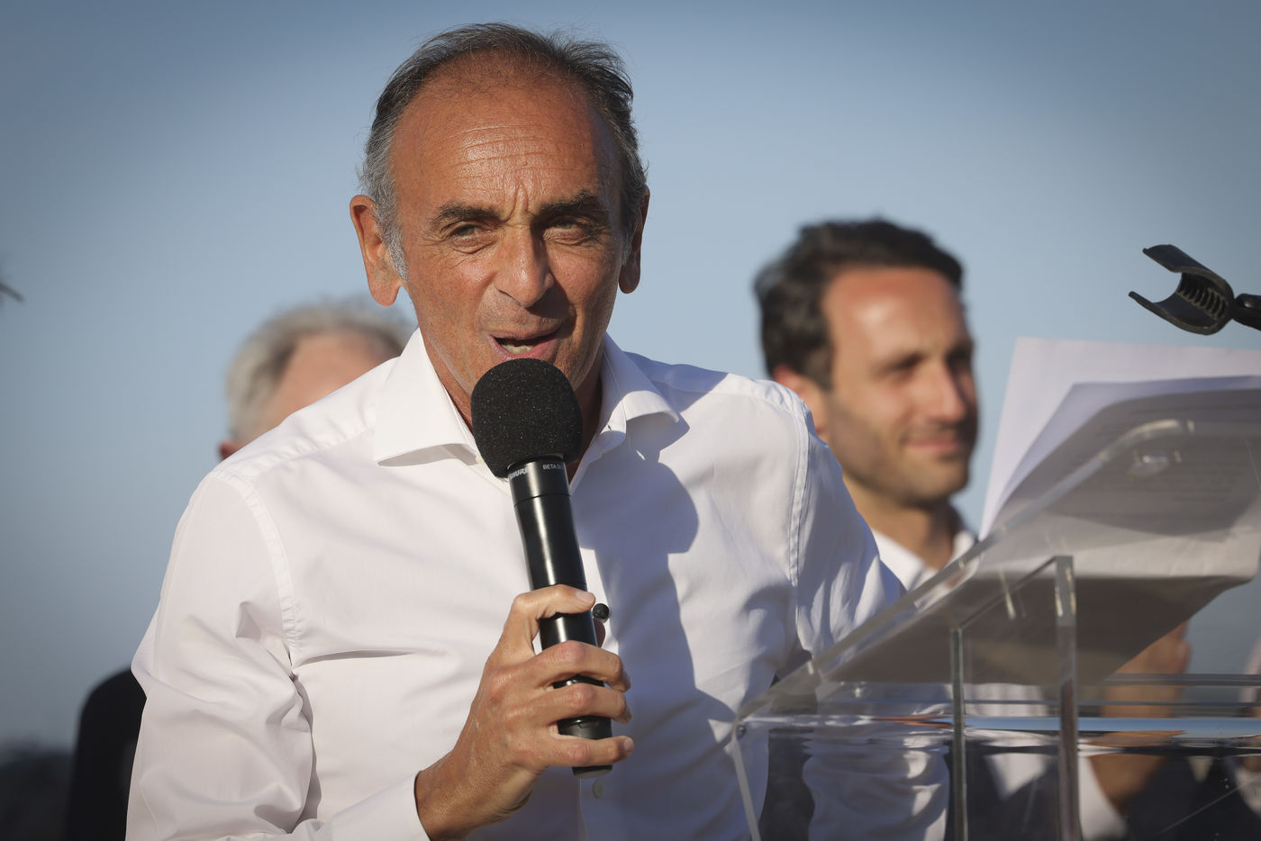 The leader of Reconquête campagne presents his candidacy for the 2022 legislative elections, on a beach in Cogoilin, near Saint Tropez in the 4th constituency of the VAR. Candidacy supported by his host Marc Etienne Lansade.