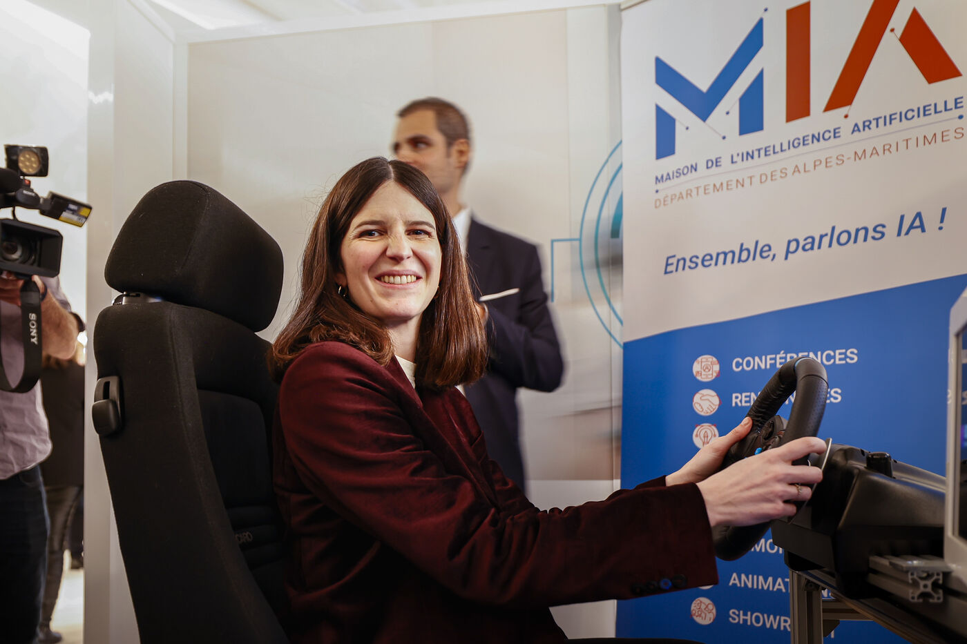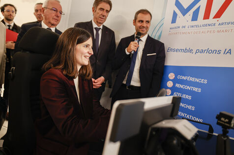 Clara CHAPPAZ, ministre française de l'intelligence artificielle et de l'économie numérique, en visite sur la technopole de Sophia-Antipolis pour rencontrer les acteurs locaux travaillant sur l'intelligence artificielle. Les élus locaux de Biot, Antibes, Valauris se sont retrouvé autour de la Ministre à la Maison de l'Intelligence artificielle.