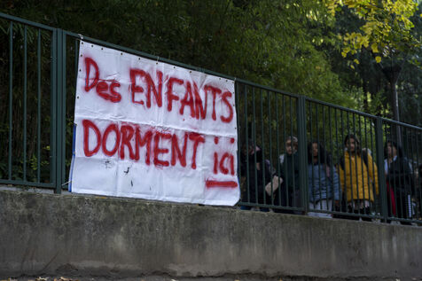 WORK IN PROGRESS - France, Michel Servet school in Lyon occupied since Monday, November 14, 2022 to welcome families sleeping in the street with children attending the school. It is the teachers and the parents of the students who come to the rescue of the homeless children to offer them a roof over their heads and a minimum of dignity by sleeping in warmth and having access to hot water.