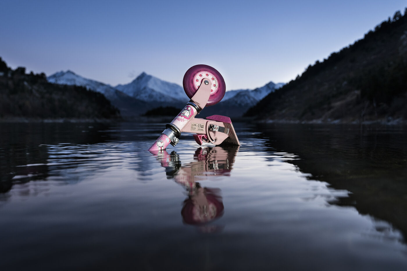 À chaque crépuscule, j'errais autour d'un lac, le coffre rempli de jouet pour trouver le bon lieu et sentir quel jouet allé pouvoir y couler avant de le mettre en scène.