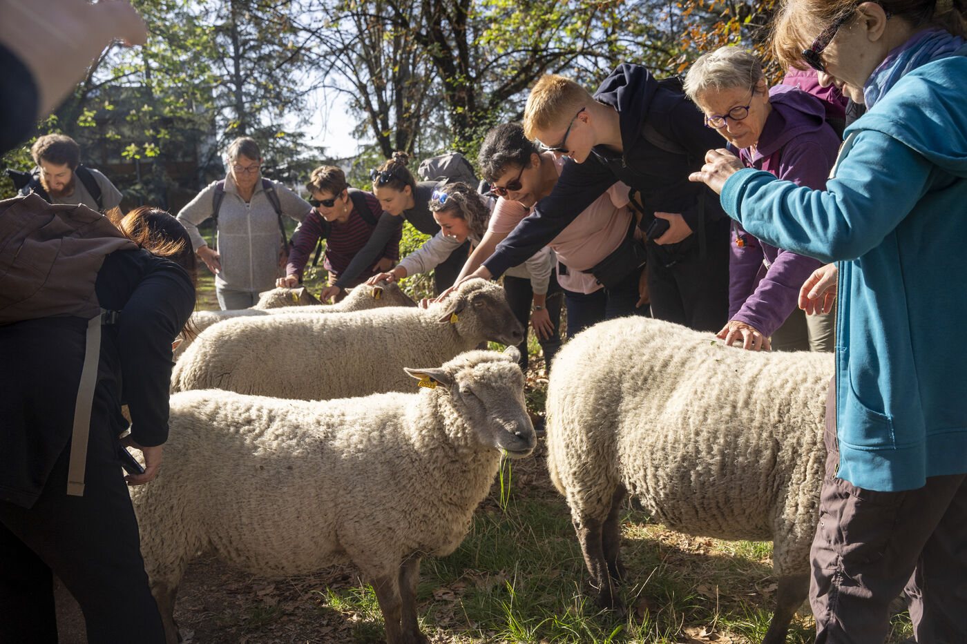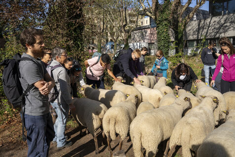 La Bergerie urbaine, an urban agriculture facility in Lyon, during the 3rd edition of la petite transhumance, an itinerant sheep grazing in the Lyon metropolitan area.