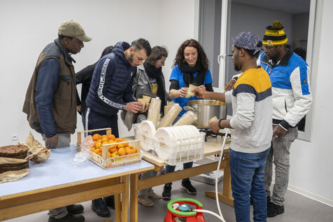 To celebrate the 70th anniversary of Abbé Pierre's appeal, the Jamais Sans Toit network and the Emmaus community of Bourgoin Jallieu hosted a meal at the Montel school. The Jamais sans toit Lyon collective requisitioned the unoccupied Montel school to shelter 112 people, including 64 homeless children, until an emergency accommodation solution could be found for them. Unconditional shelter for the homeless.