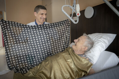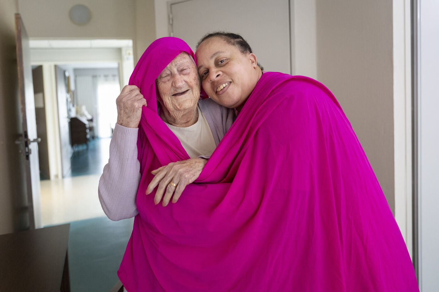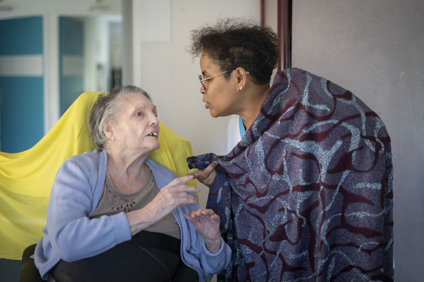 L'Ehpad est une société avec son fonctionnement, ses difficultés et ses liens. Le travail “L'aire du lien” a cherché à saisir ces liens entre soignant.e.s et résident.e.s au cours d'une démarche scénographiée.
