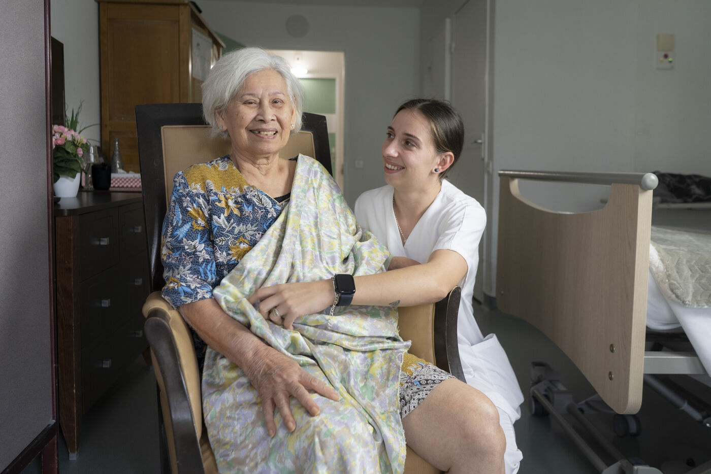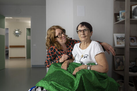 The result, installed in the hall and corridors of the Ehpad, brings colour to the space and shows these links to all the people who live there and to their families.