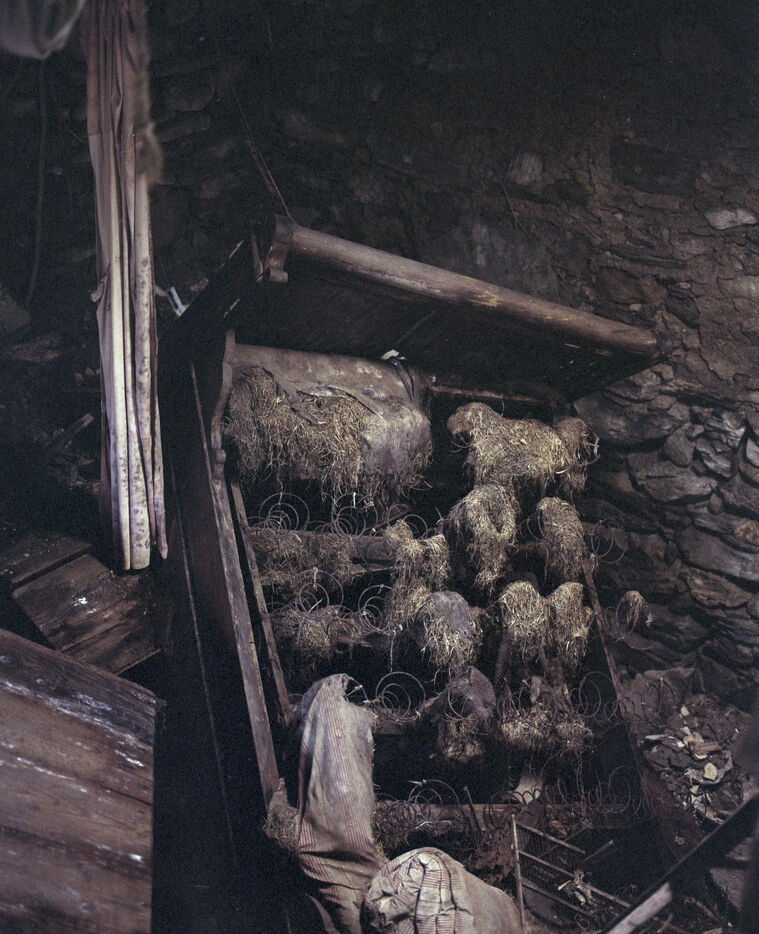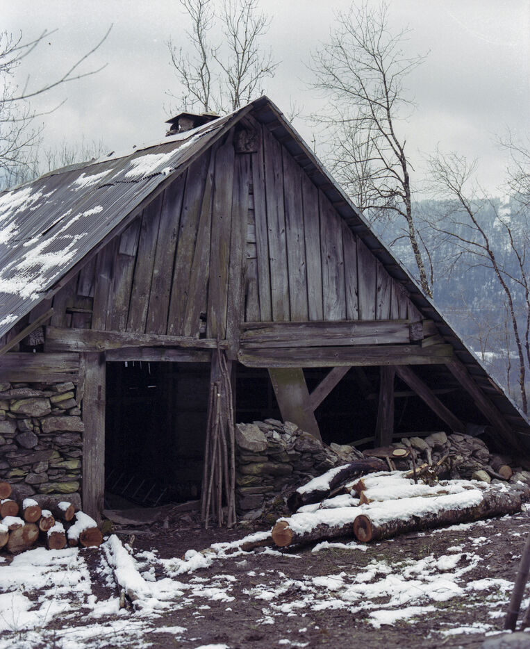 Residence with the poet Bastien B. Vollerin this series is the result of encounters with living beings, objects and sounds transcribed using analogue processes: typewriters and medium-format analog cameras. The result is a small book, sixty pages of poetic texts and photographs imagined in an isolated house in the mountains between the tenth and eighteenth days of March 2025. The colour photos were developed and printed on site, and the book was finished in this place half refuge and half hut.