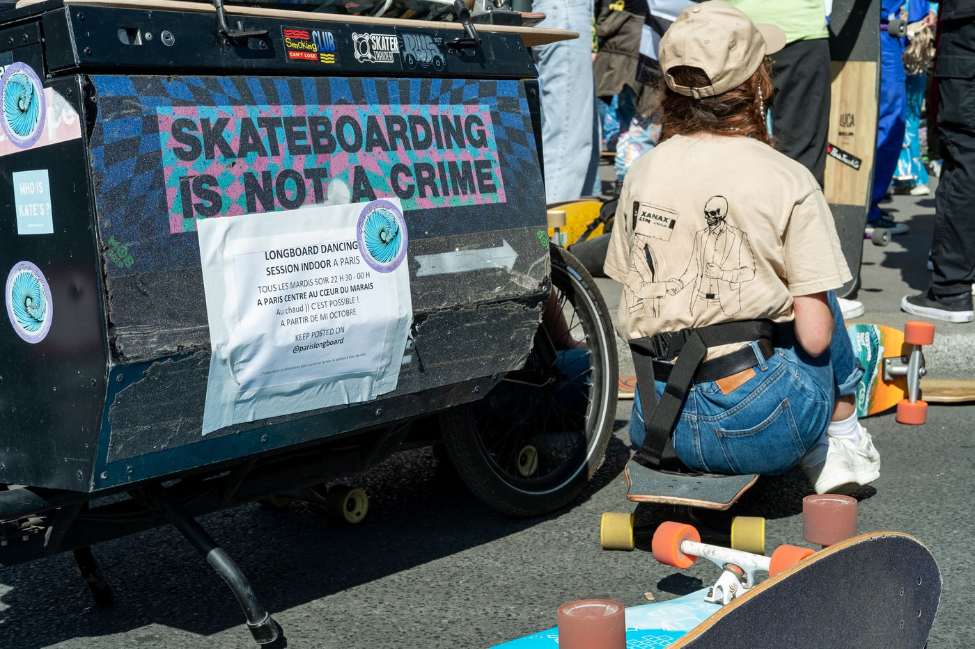 Randonnée en Longboard dans la ville de Paris organisée par l'association DockSession à l'initiative du skater professionnel et influenceur Lotfi Lamaali. Un millier de participants se sont réunie déguisé et munis de leur planche pour parcourir la capital durant une journée sans voiture.