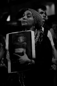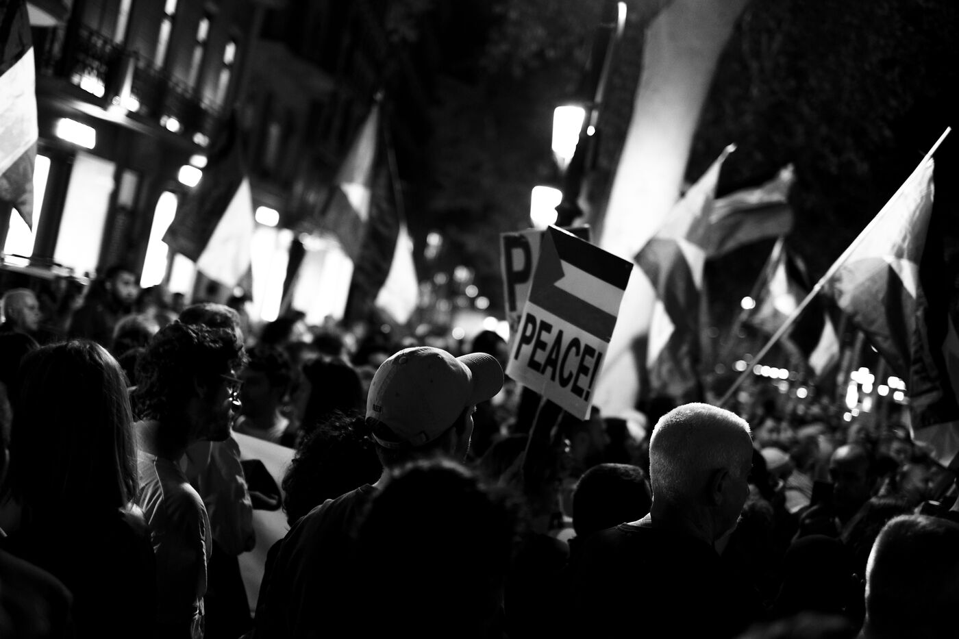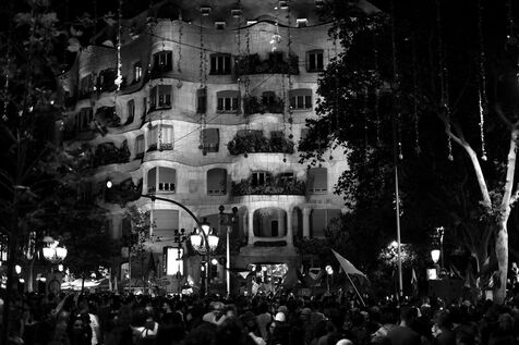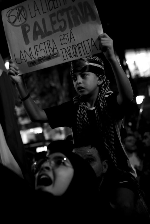 Gathering of several hundred supporters of the Palestinian cause in front of the European Parliament office in Barcelona.