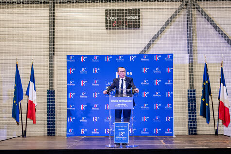 Bruno Retailleau donne un discours devant un parterre de sympathisants des Républicains