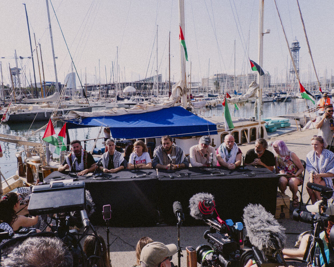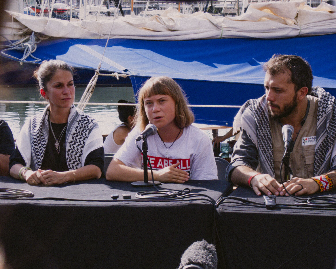 Spain, Barcelona, 2025/08/31. Activists from 44 countries, including Greta Thunberg, embark from Barcelona as part of the Freedom Flotilla 2025, the largest humanitarian mission to Gaza to date. The initiative aims to break the Israeli blockade and establish a humanitarian corridor. Photograph by Alexandre Bré / Hans Lucas.