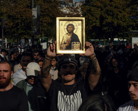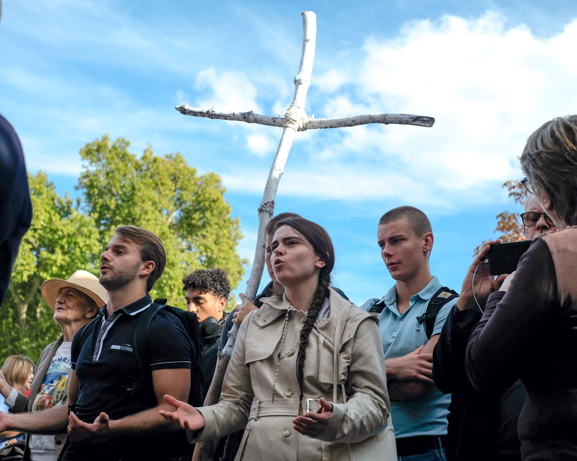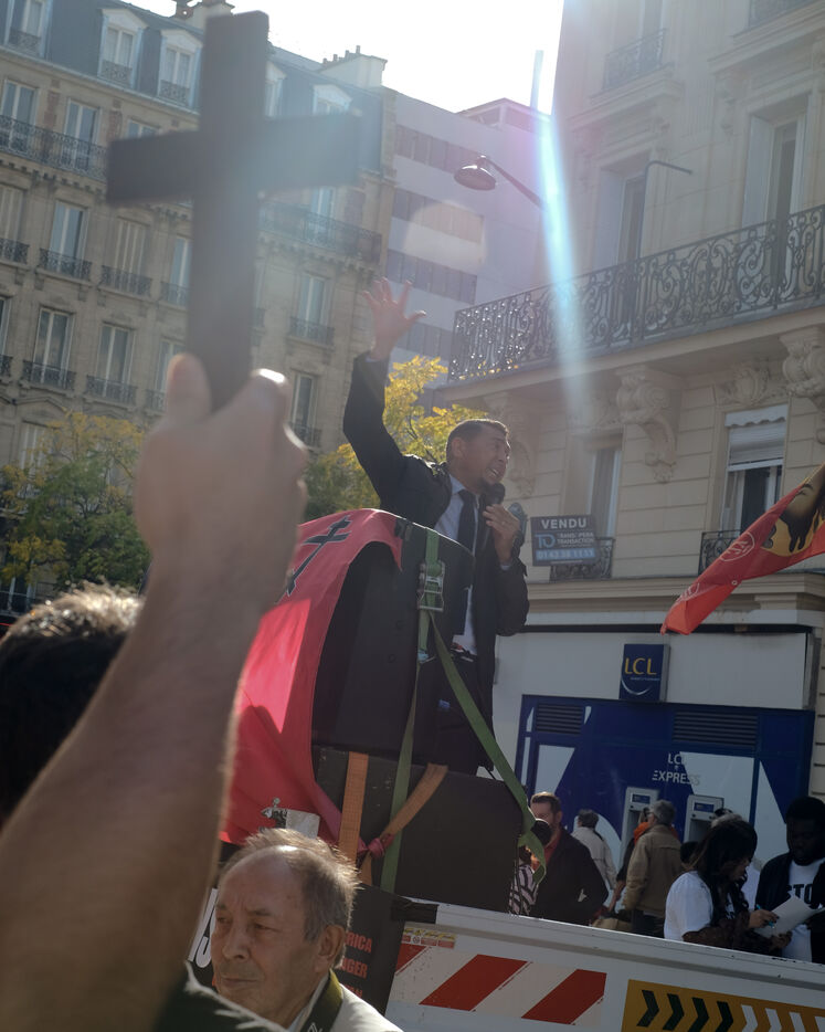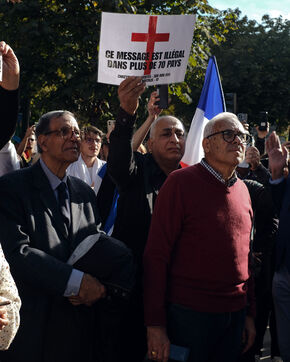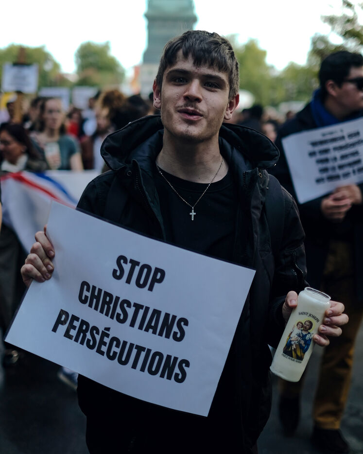 France, Paris, 2025/09/28. A rally against Christianophobia organized by various associations, including SOS Chrétiens d’Orient, to highlight the persecution of Christians in France and around the world.