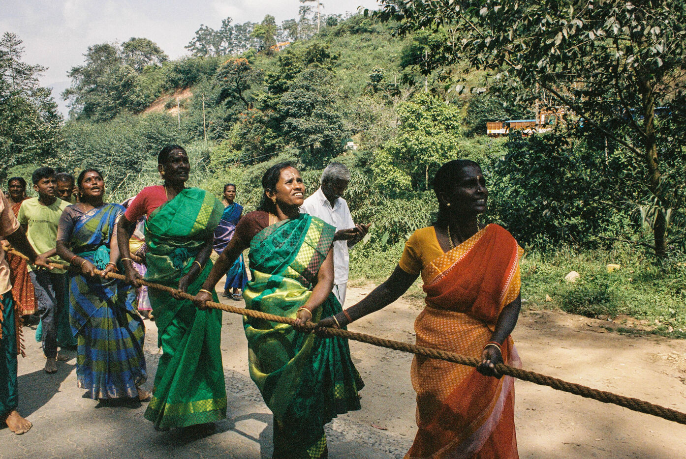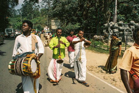 Hindu parade on the hills of Munnar, next to tea plantations in Kerala.