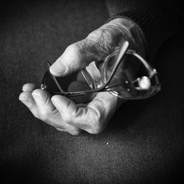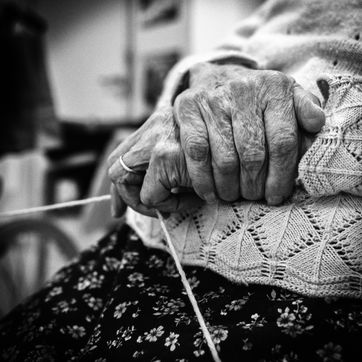 Reportage et série de portraits de personnes agées en noir et blanc dans une maison de retraite (EHPAD) en Ariège (Seix et Pamiers)