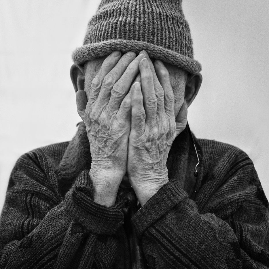 Photographic report and series of portraits of old people in black and white in a retirement home (EHPAD) in Ariège (Seix and Pamiers)